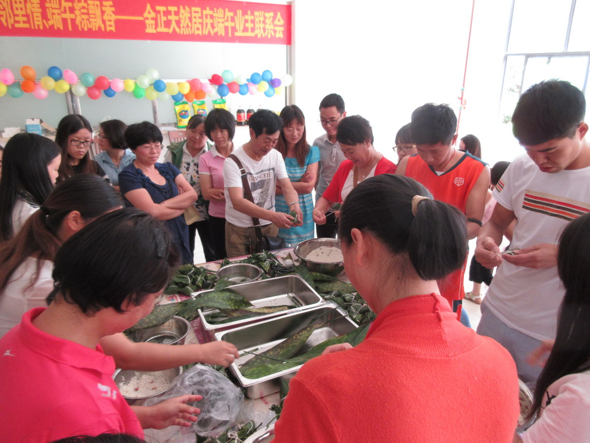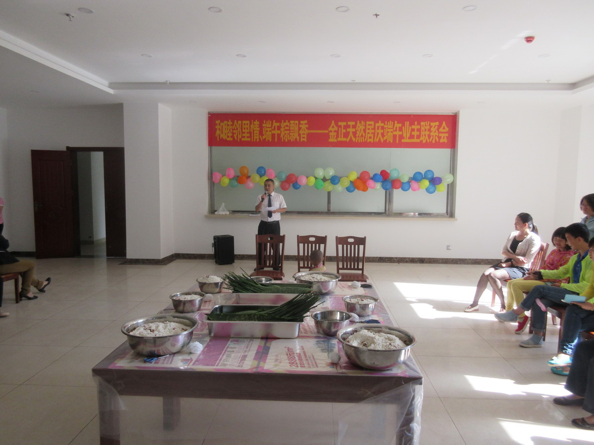 •     為繼承和發(fā)揚(yáng)民族優(yōu)秀傳統(tǒng)文化,營造和諧社區(qū)氛圍,增強(qiáng)小區(qū)業(yè)主鄰里間感情,豐富小區(qū)業(yè)主業(yè)余文化生活,201668,由金正天然居物業(yè)管理處和天然居銷售部共同主辦、藍(lán)天琴行協(xié)辦的天然居慶端午業(yè)主聯(lián)系暨包粽子大賽在天然居小區(qū)食堂成功舉辦,經(jīng)過前期籌備,活動(dòng)當(dāng)天共有40余戶業(yè)主和意向客戶參與包粽子比賽,實(shí)際到場100余人。