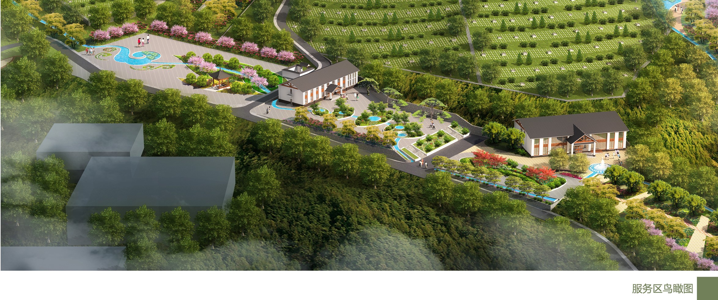 園區(qū)依山面水,利用山體造型和道路節(jié)點(diǎn),不斷營(yíng)造出曲徑通幽的景觀意境及由綠蔭小道過(guò)渡為豁然開朗的闊敞空間的視覺(jué)沖擊效應(yīng),處處著眼人性化的設(shè)計(jì),充分考慮人的審美需求、教育需求、精神傳承與升華需求。