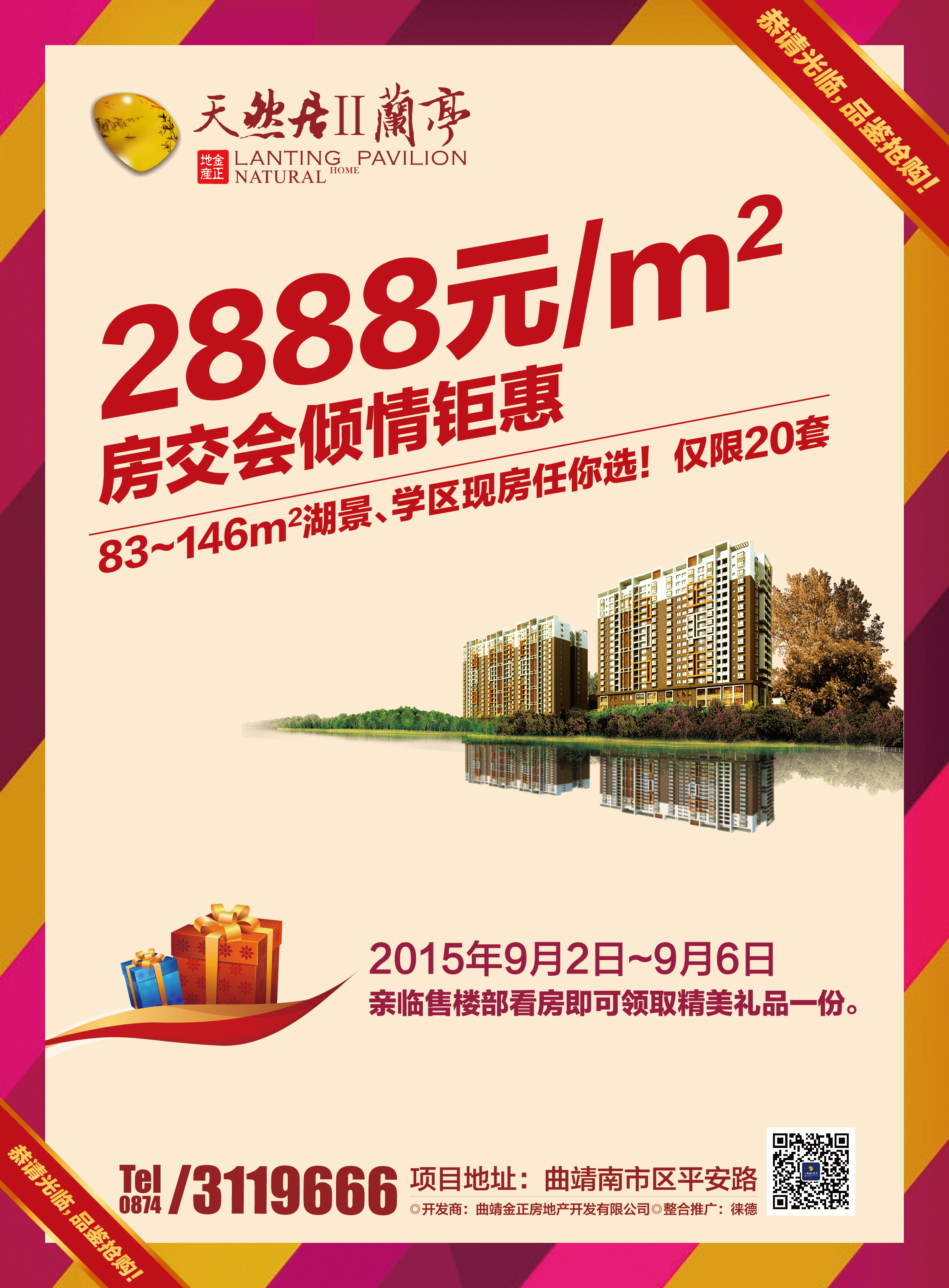天然居Ⅱ蘭亭將在2015年9月2日至6日曲靖房交會(huì)期間傾情推出2888元/m²,不限戶型、樓層(僅限20套房源)的購(gòu)房?jī)?yōu)惠活動(dòng),房源有限,先到先得!
